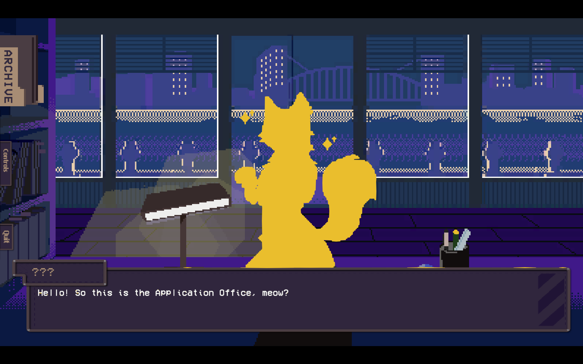 Daily Loop: Meet new cats, review their files, hold short talks, then make your decision before the day ends.